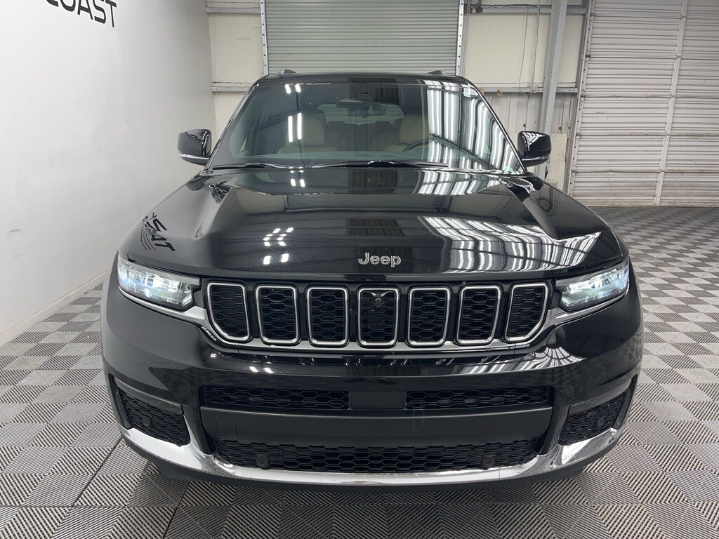 Certified Eligible. $62135 MSRP NEW. Diamond Black Crystal Pearlcoat 2023 Jeep Grand Cherokee L Limited RWD 8-Speed Automatic 3.6L V6 24V VVT 2nd Row Manual Window Shades, 3rd row seats: split-bench, 506 Watt Amplifier, 9 Amplified Speakers w/Subwoofer, Active Noise Control System, Auto High-beam Headlights, Auto-Dimming Exterior Driver Mirror, Brake assist, Capri Leatherette w/Axis II Seats, Dual-Pane Panoramic Sunroof, Electronic Stability Control, Front fog lights, Fully automatic headlights, Garage door transmitter, Heated front seats, Heated rear seats, Heated steering wheel, Integrated Off-Road Camera, Interior Rear Facing Camera, Intersection Collision Assist System, Luxury Tech Group II, Memory seat, Memory Steering Column, Navigation System, ParkSense Front/Rear Park Assist w/Stop, ParkView Rear Back-Up Camera, Passive Entry - Front/Rear Doors, Liftgate, Power driver seat, Power Liftgate, Power steering, Power Tilt/Telescope Steering Column, Quick Order Package 23E, Rain Sensitive Windshield Wipers, Rear Back Up Camera Washer, Rearview Autodim Digital Display Mirror, Surround View Camera System, Ventilated Front Seats, Wheels: 18" x 8.0" Polished/Painted Aluminum, Wireless Charging Pad.